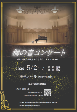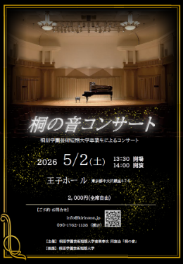 ♪「桐の音コンサート」の開催が2026.05.02王子ホールに決定しました。